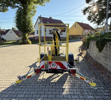 Táto plošina, dodaná v výraznej žltej farbe, je pripravená slúžiť predovšetkým pri opravách a údržbe budov.